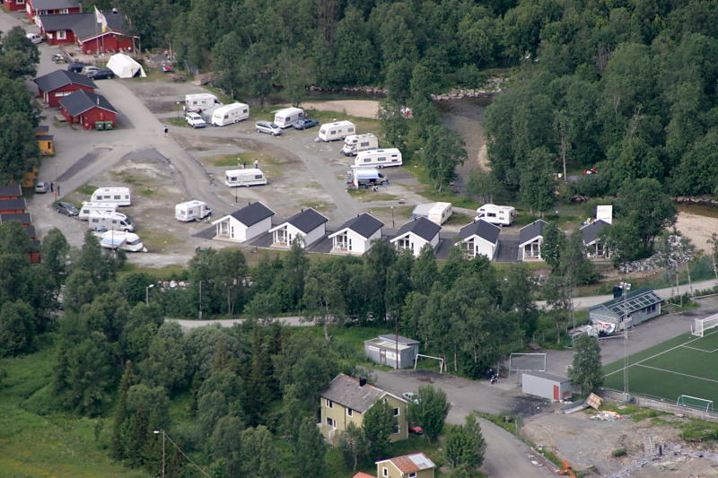 Kokkolan kisojen jälkeen oli hyvä jatkaa pohjoisemmaksi. 15.7. startattiin Torniosta Haaparannan kautta Ruotsiin, jonka läpi ajettiin päivässä. Illalla saavuimme sateiseen Narvikiin. Narvik Camping oli matkaoppaanamme toimineen Lonely Planetin mukaan meluisa yöpymispaikka rautatien ja maantien rekkaliikenteen vuoksi, mutta meidän untamme mikään ei pystynyt häiritsemään. Kuva on otettu leirintäalueelta kaupunkiin päin.